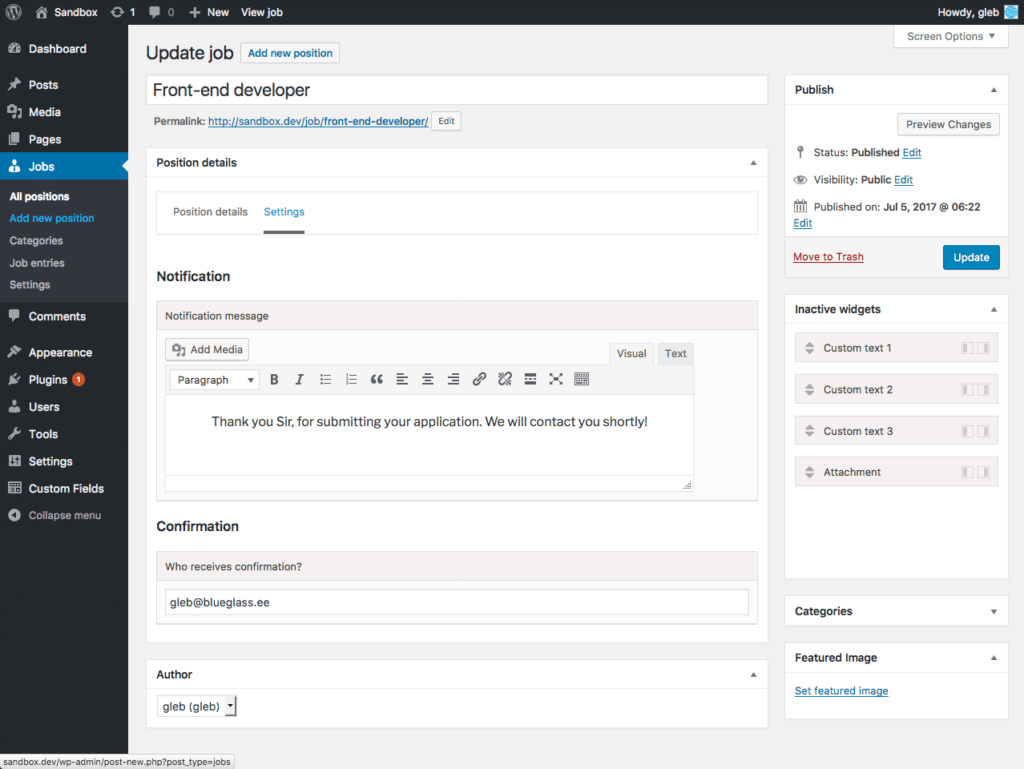 / Jobs for WordPress Plug-in.