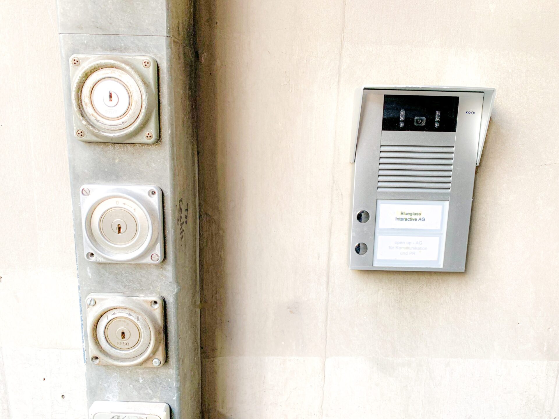 Klingeln Sie zu Beginn der Durchfahrt bei ‹BlueGlass› für die Toröffnung