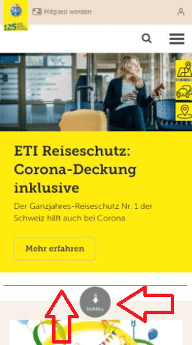 Das runde Element, der Scroll-Button, wird nach oben animiert. Dies verursacht zwar keine effektive Layoutverschiebung, wird aber von Google falsch interpretiert und somit auch schlecht bewertet.
