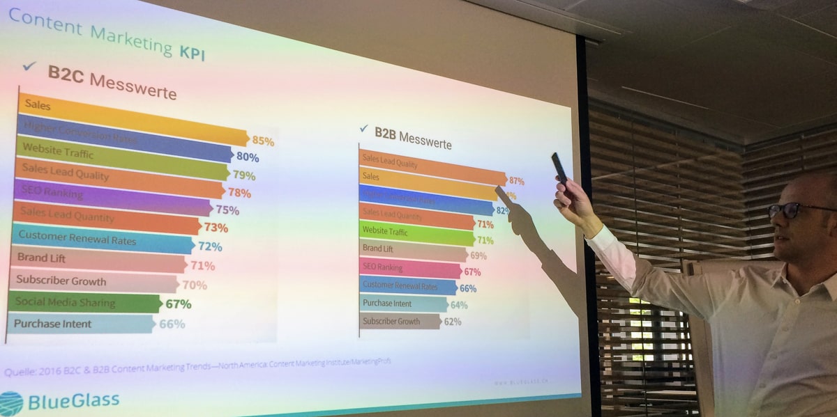 Content Marketing ist in aller Munde und ein aktuelles Hype-Thema. In dieser Masterclass beleuchtet BlueGlass Interactive CEO Raphael Bienz die Optionen für die Erfolgsmessung von Content Marketing und welche KPI sich dafür eignen.