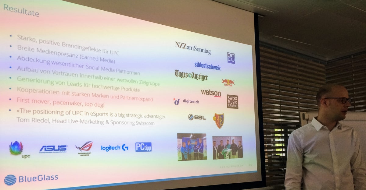 Zum Thema eSports wurden in der Schweiz bereits 140 Videos bei YouTube hochgeladen. Viele Medien haben das Thema aufgegriffen, z.T. auf ganzseitigen Artikeln in der Sonntagspresse. Als Presenting Partner baut sich UPC aktuell Vertrauen auf innerhalb einer wertvollen Zielgruppe.