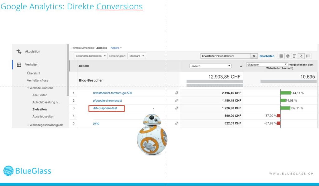 Direkte Conversions gemäss Google Analytics