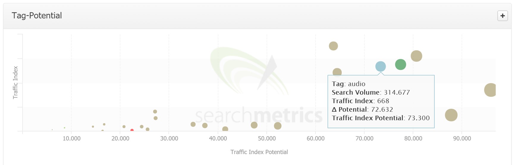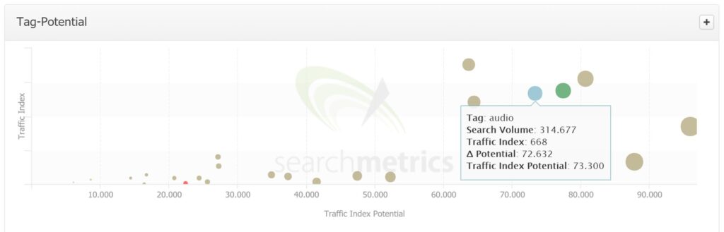Auch eine Potentialanalyse für Tags ist möglich: Welche Themen geniessen ein hohes Suchvolumen, wo lohnt es sich, relevante Inhalte zu erstellen?