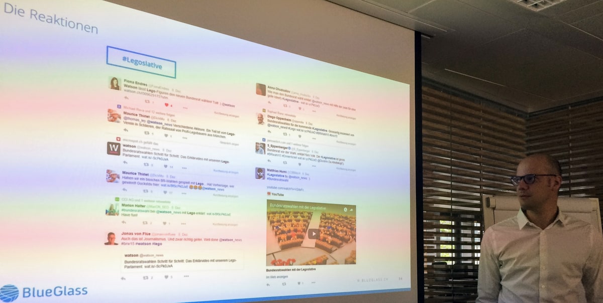 Am Tag der Bundesratswahl etablierte sich der Hashtag #Legoslative, weil Watson die LEGO-Modelle für eine Prognose und die Live-Berichterstattung nutzte. Das gab ihnen Unique Content im Gegensatz zu den üblichen Pressefotografien der anderen Medienhäuser.
