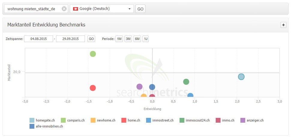 SEO Marktanteil-Entwicklung von Schweizer Immobilienplattformen