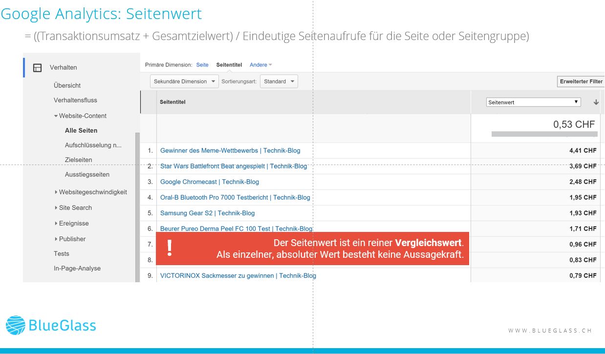 Seitenwert gemäss Google Analytics