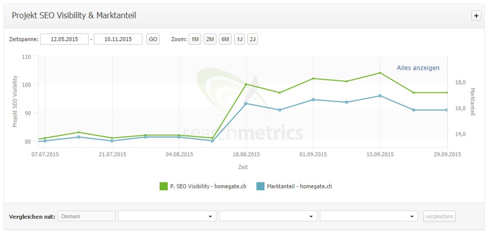 Zusammenhang von SEO-Visibilität und Marktanteile am Beispiel von homegate.ch