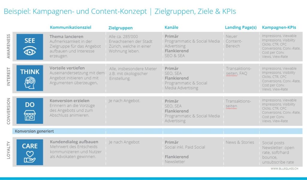 - Welche Kampagnen sollen gepusht oder gedrosselt werden, damit man die Verkaufsabteilung und den Kunden bei den Firmenzielen effektiv unterstützen kann?