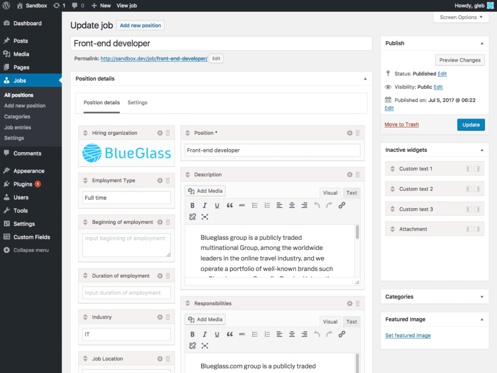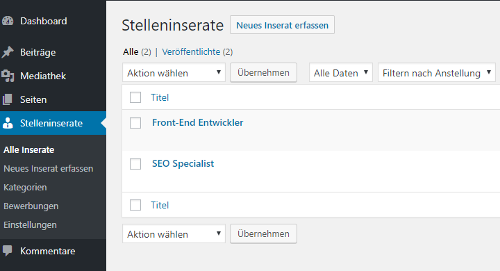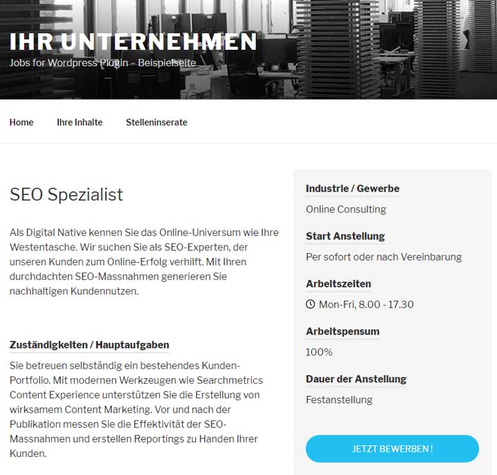 Das Plugin ist aber kein Bewerbermanagementsystem! Es dient primär dazu, eigene Stelleninserate effizient zu formatieren und auf der Webseite zu publizieren.