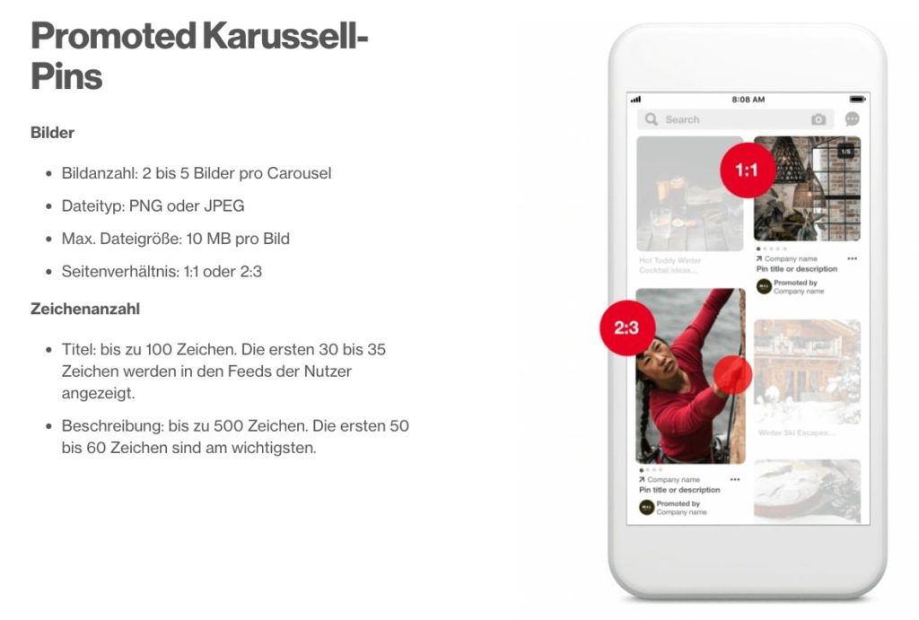 Bis zu 5 Bilder können in einem Pin aufgeführt werden. Der User hat so die Möglichkeit, sich durch die 5 Bilder zu swipen.