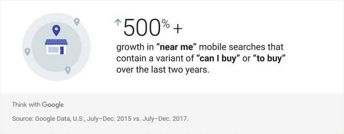 Gemäss Google haben Suchen im Einzugsgebiet des eigenen Standortes in den letzten zwei Jahren um mehr als 500% zugenommen.
