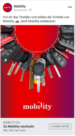 Als strategisches Einstiegsangebot wurde das viermonatige Test-Abo gewählt, weil es den Nutzern die Möglichkeit gibt, das gesamte Mobility-Angebot unverbindlich zu testen. Ausserdem werden Testabo-Kunden mehrheitlich zu guten Mobility Kunden. Die Zielgruppen sind wir mit Angebotsvorteilen angegangen, die auf ihre eigenen Bedürfnisse zugeschnitten sind.